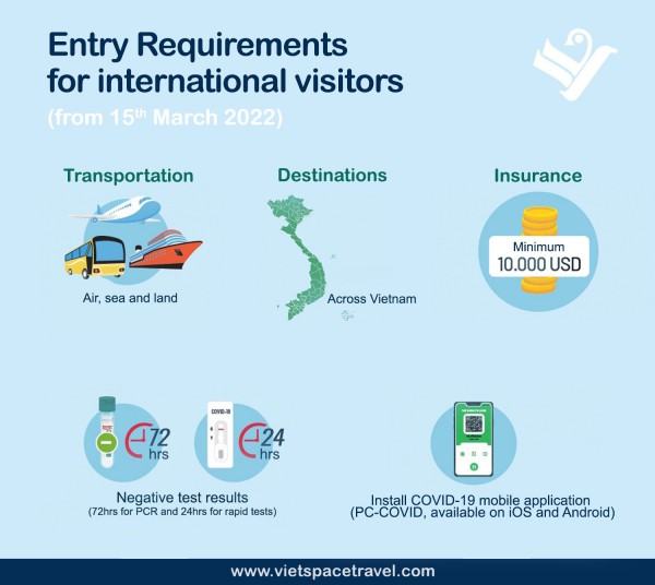Regulations for international visitors to Vietnam from 15th March 2022